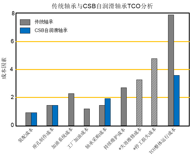 如果没有使用润滑油来合理维护注油轴承,除了会出现潜在失效之外,这种轴承运行的总体成本远高于CSB自润滑轴承。大多数制造企业已认识到,使用注油轴承所面临的采购、装配、注油和维护注油区的成本,至少是自润滑轴承的2倍,最大达到4倍。显而易见,外部润滑会对当今机械设计工程师造成不可控的设计变量。一旦设备交付客户使用,客户必须妥善地对轴承装配进行维护,或处理各种潜在故障;同时,质量责任或是保修索赔也可能会随之出现。如果担心后期维护问题,那么更好的解决方案就是使用CSB自润滑轴承。自润滑是理想的解决方案,是因为它能够彻底地润滑接触表面,不会像使用润滑油或其他油/脂那样吸灰尘和污垢并引发工况环境问题,不需要场所,也无需长期维护。