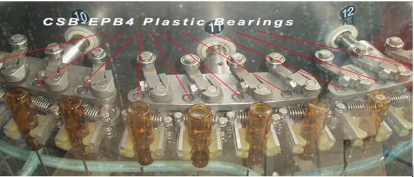 工程塑料轴承:制药机械中洗瓶机作为洗灌封联动机组中首要的组成部分具有非常关键的作用,洗瓶机质量的好差直接影响到后面连带的灌装机和封口机的正常运转;而洗瓶机关键部位为装有自润滑轴承的洗瓶夹钳,洗瓶夹钳需要长期与清洗液接触且必须确保每次精准的夹持和翻转的定位,这就要求自润滑轴承确保能在清洗液中长期工作不会出现转动不灵活的现象,而且轴承能确保长期工作耐磨损精确传动;EPB4工程塑料轴承以其出色的耐腐蚀性能和高耐磨性能在洗瓶机夹钳转动部位成为独一无二的选择。