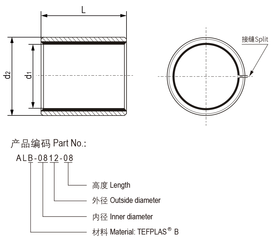 标准轴承基体材料为轻质高强度铝合金,当轴承应用于有耐腐蚀性要求比较高的场合建议采用不锈钢基体与TEFPLAS® G作为耐磨层材料;