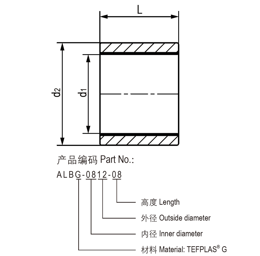 标准轴承基体材料为轻质高强度铝合金,当轴承应用于有耐腐蚀性要求比较高的场合建议采用不锈钢基体与TEFPLAS® G作为耐磨层材料;