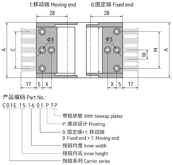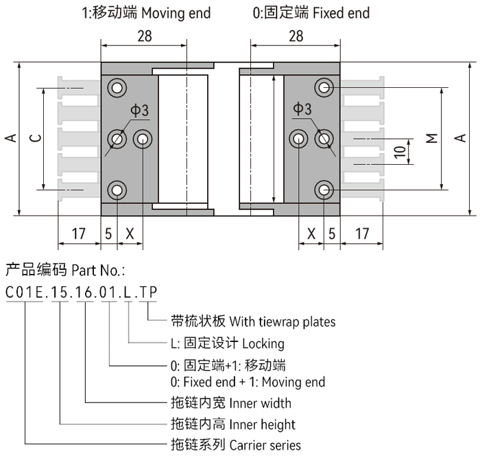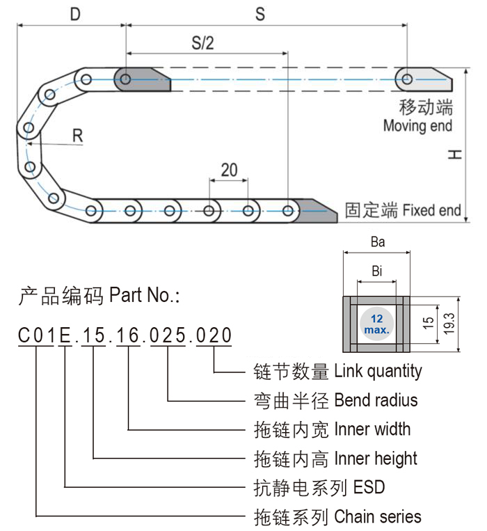 *A1|A2|A3|A4订购预装配拖链请注明安装方式