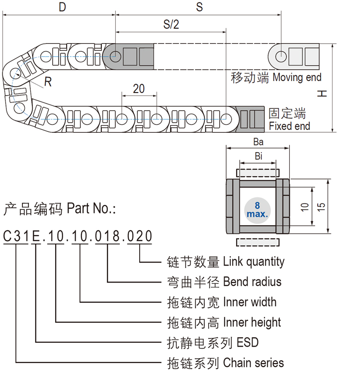 ▊DURAMOV®电缆拖链查询系统输出数据信息仅供设计选型参考,不可作为最终电缆拖链符合性判定依据;如有疑问请与CSB®销售工程师联系。