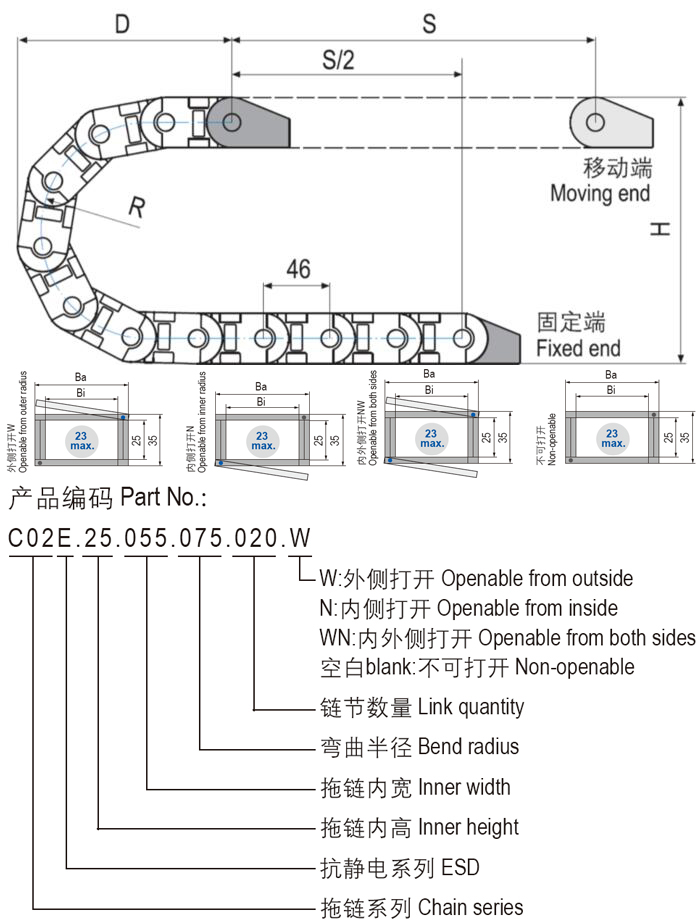 *C02E.25拖链接头安装方式示意图
