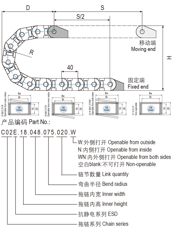 *A1|A2|A3|A4订购预装配拖链请注明安装方式