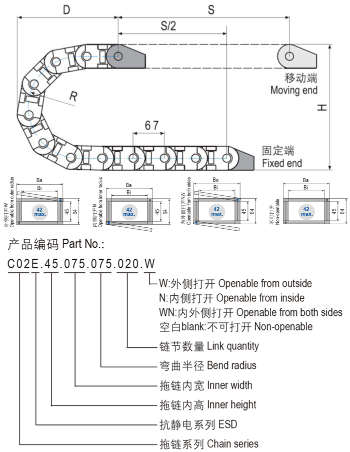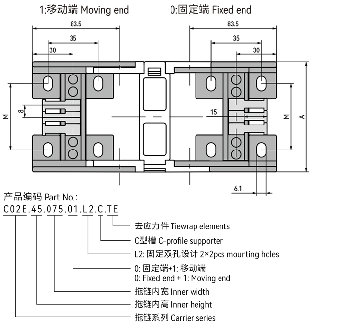 *A1|A2|A3|A4订购预装配拖链请注明安装方式
