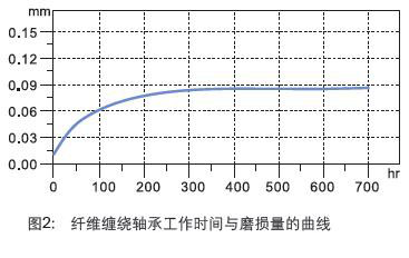 轴承磨损的影响因素有承载、运动方式、速度以及相配轴的表面粗糙度等;图2说明了缠绕轴承在50MPa载荷、室温的条件下摇摆运动中的磨损情况。根据图表我们可以看出在最初的时