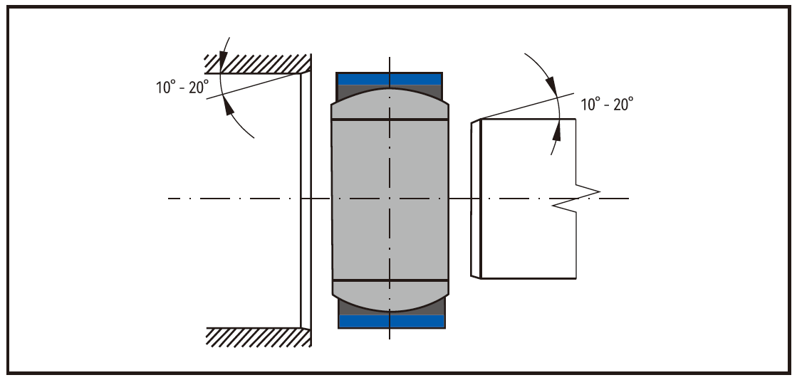 向心关节轴承的精确对中定位是完美安装的基本前提。因此,轴承座孔和轴端应在轴向方向上加工 10°至20°的倒角。