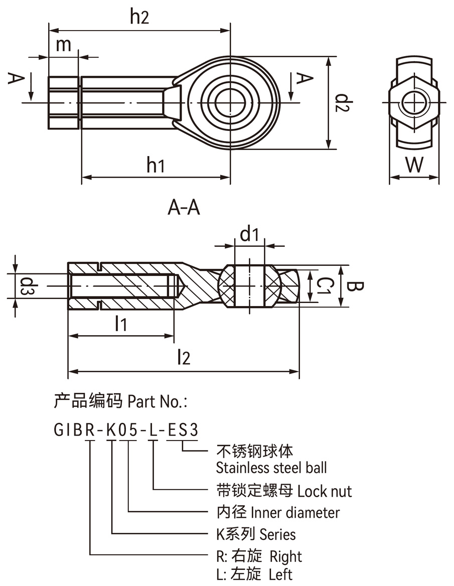 产品编码 | 最大静态抗拉强度 | 最大径向静态负荷 | 球体最大扭矩 | 重量 | ||