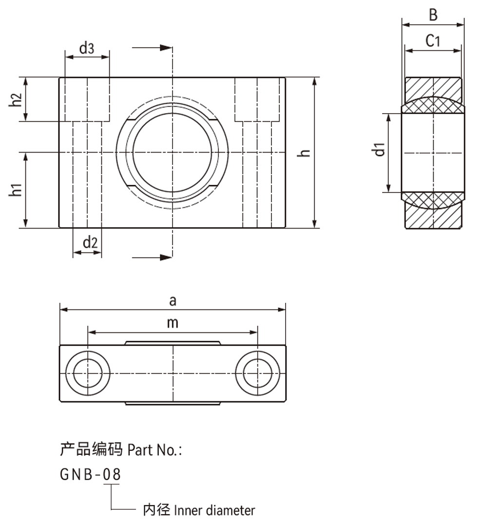 球体采用高耐磨材料EPB15制成 保持器采用高强度和尺寸稳定性材料M163制成 连接器采用高强度铝合金 自润滑、免维护 无噪音和易安装 轴承相对角度可调节 中心距根据需求
