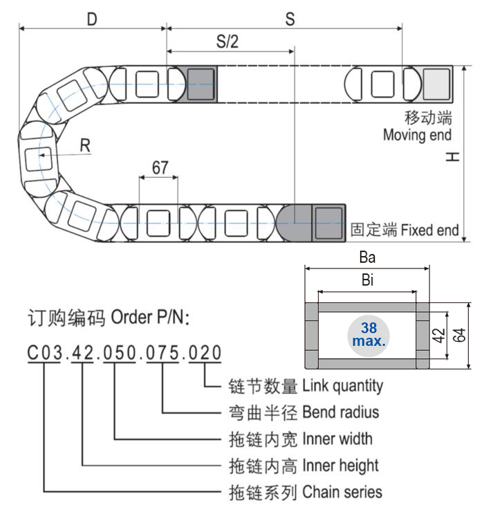 ▊DURAMOV®电缆拖链查询系统输出数据信息仅供设计选型参考,不可作为最终电缆拖链符合性判定依据;如有疑问请与CSB®销售工程师联系。