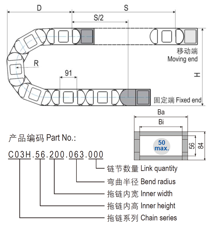 ▊DURAMOV®电缆拖链查询系统输出数据信息仅供设计选型参考,不可作为最终电缆拖链符合性判定依据;如有疑问请与CSB®销售工程师联系。