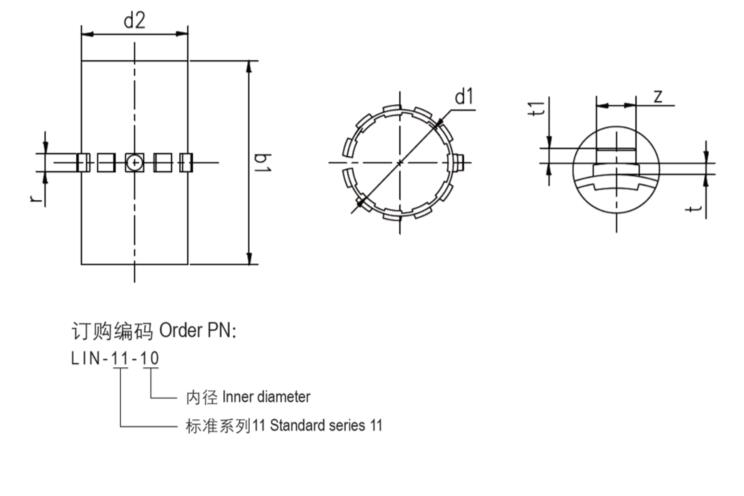 | 产品编码 | 轴径 [mm] | D H7 [mm] | B h10 [mm] | r+0.5 [mm] | t+0.05 [mm] | Z+0.2 [mm] | ![]() |