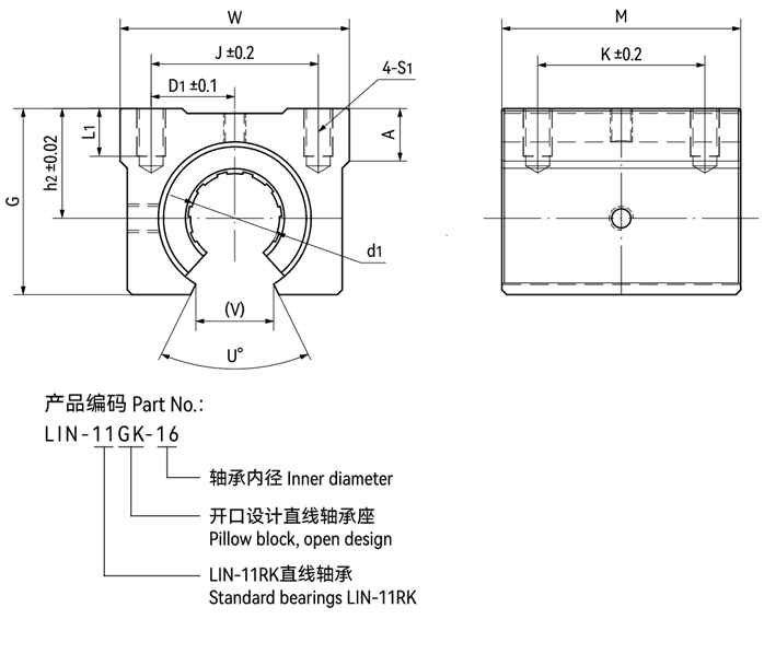 产品编码 | 内装轴承 | 最大许可动载荷 [N] | 最大许可静载荷 [N] | 重量 | ||||