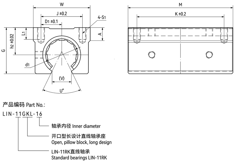 产品编码 | 内装轴承 | 最大许可动载荷 [N] | 最大许可静载荷 [N] | 重量 | ||||
