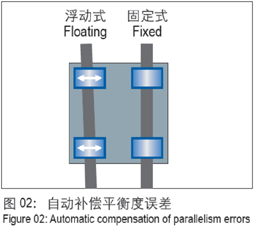 在有两根轴或导轨平行使用的直线运动系统里,我们建议其中一边安装浮动直线轴承。无论是水平安装,垂直安装还是侧向安装,这种固定轴 承加浮动轴承的合理结构适合每个方向。这种安装方式可以避免由于两根轴或导轨的平行度偏差导致的卡死现象。这是由浮动轴承通过对可能 产生平行度偏差的方向做一定范围的游动来实现的。