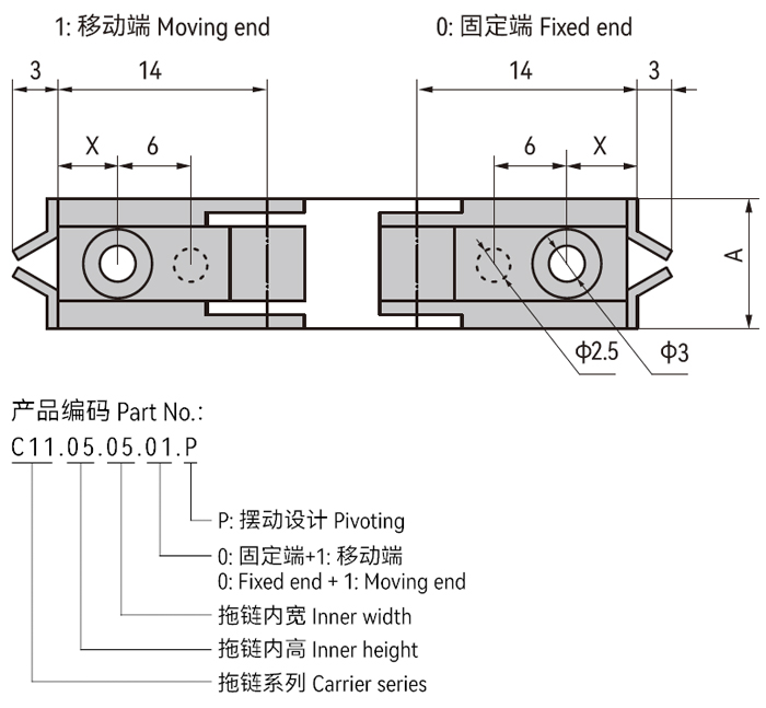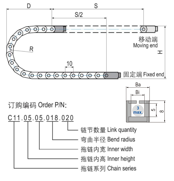*实际安装高度:HF=H+10mm(负载 0.1kg/m)