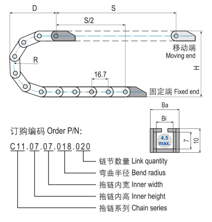 *实际安装高度:HF=H+10mm(负载 0.1kg/m)