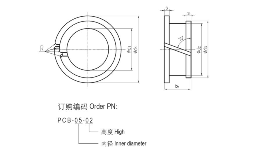 PCB塑料卡箍轴承是采用耐磨性较好的EPB3M材料制成,轴承具有良好的自润滑性能,可以完全干运行;当然,由于EPB3M对各种润滑剂具有良好的抗性,所以使用过程中额外的润滑剂也是被允许的。