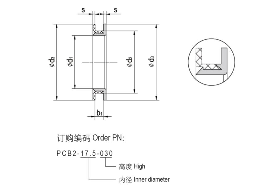 PCB塑料卡箍轴承是采用耐磨性较好的EPB3M材料制成,轴承具有良好的自润滑性能,可以完全干运行;当然,由于EPB3M对各种润滑剂具有良好的抗性,所以使用过程中额外的润滑剂也是被允许的。