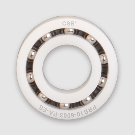 PRTB10作为通用性较强的塑料滚动轴承材料具有良好的强度和耐磨性,由于其材料自身的润滑性噪音较低;此类轴承碱性环境下表现良好但不适合在酸性环境下长期运行。