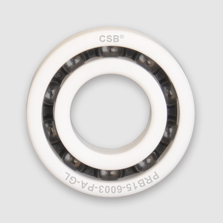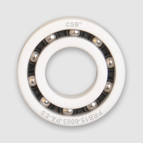 PRTB10作为通用性较强的塑料滚动轴承材料具有良好的强度和耐磨性,由于其材料自身的润滑性噪音较低;此类轴承碱性环境下表现良好但不适合在酸性环境下长期运行。
