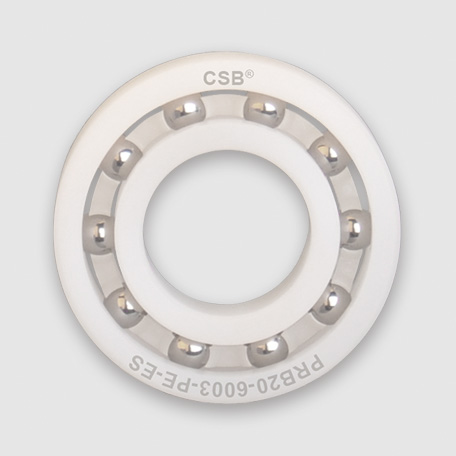 PRTB10作为通用性较强的塑料滚动轴承材料具有良好的强度和耐磨性,由于其材料自身的润滑性噪音较低;此类轴承碱性环境下表现良好但不适合在酸性环境下长期运行。