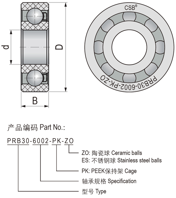 PRB30系列塑料滚动轴承具有极好的机械强度和耐磨性能,此产品能在150度的高温下正常使用,并具有极 好的抗腐蚀性能几乎能在所有的腐蚀环境下运行;标准配置内外圈材料:改良PEEK,保持架材料:改良 PEEK,滚珠材料:陶瓷-ZO或不锈钢-ES;长期连续使用温度-100~+150℃。