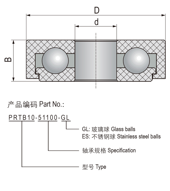 PRTB作为通用性较强的塑料滚动轴承材料具有良好的强度和耐磨性,由于其材料自身的润滑性噪音较低;此类轴承碱性环境下表现良好但不适合在酸性环境下长期运行。标准配置内外圈材料:改良POM,滚珠材料:玻璃-GL或不锈钢-ES;长期连续使用温度-40~+80℃。