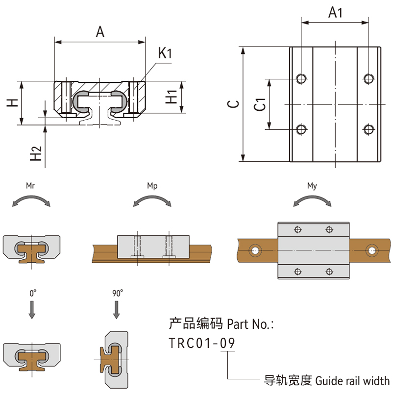 产品编码 | 最大静态载荷 [N] | 最大静力矩 [N·M] | 重量 | |||
